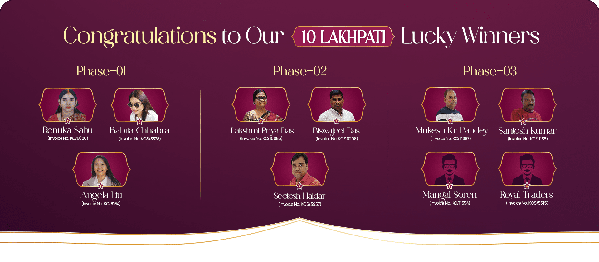 - Ten (10) Lakhpati Lucky draw Winners in total will be awarded Lakhpati vouchers of Rs.1 Lac each in 3 seasons.