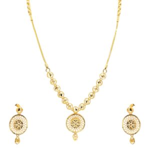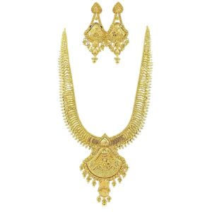 ₹2,42,976 Incl. GSTA stunning gold necklace with matching earrings, designed with elegance and finesse. Perfect for adding a touch of sophistication to any special occasion.