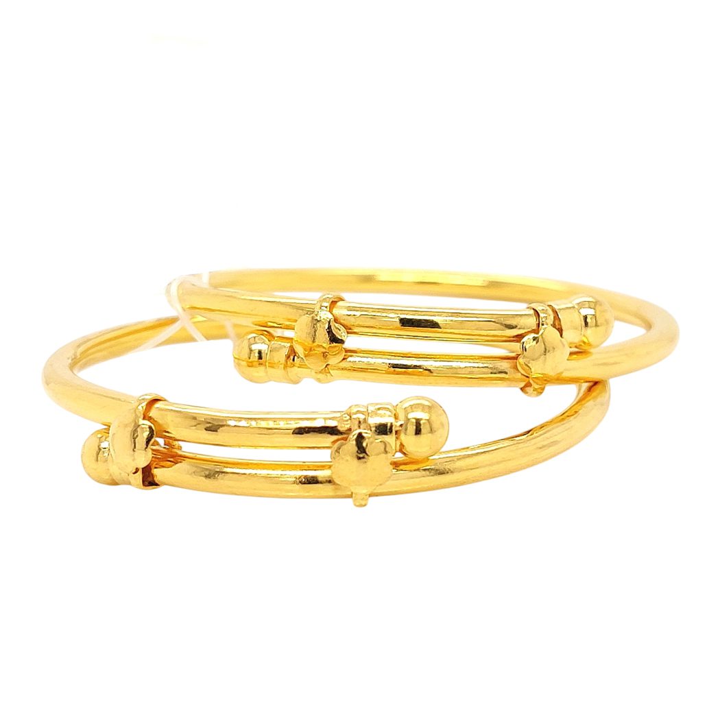 A charming gold baby adjustable bangle, crafted for comfort and elegance. Perfect for adding a touch of tradition and style to tiny wrists.
