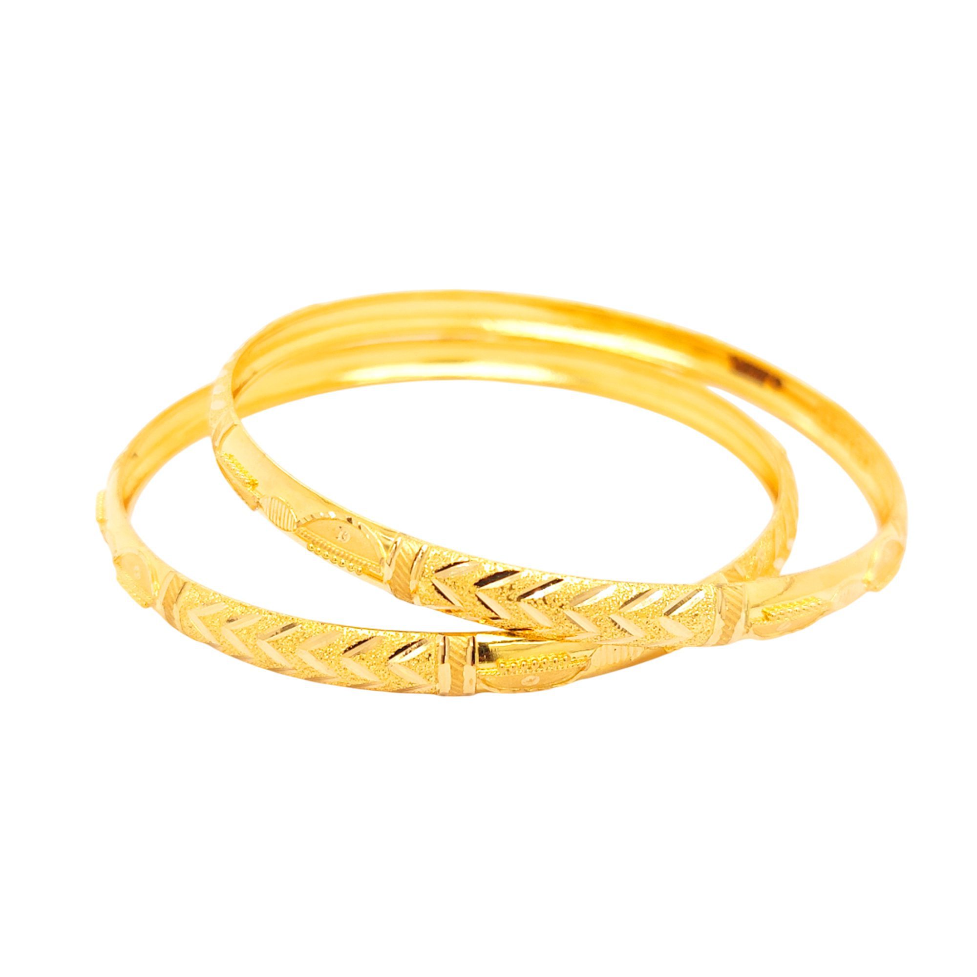 A stunning set of 2 gold bangles, crafted with elegance and precision. Perfect for adding a touch of tradition and sophistication to any attire.