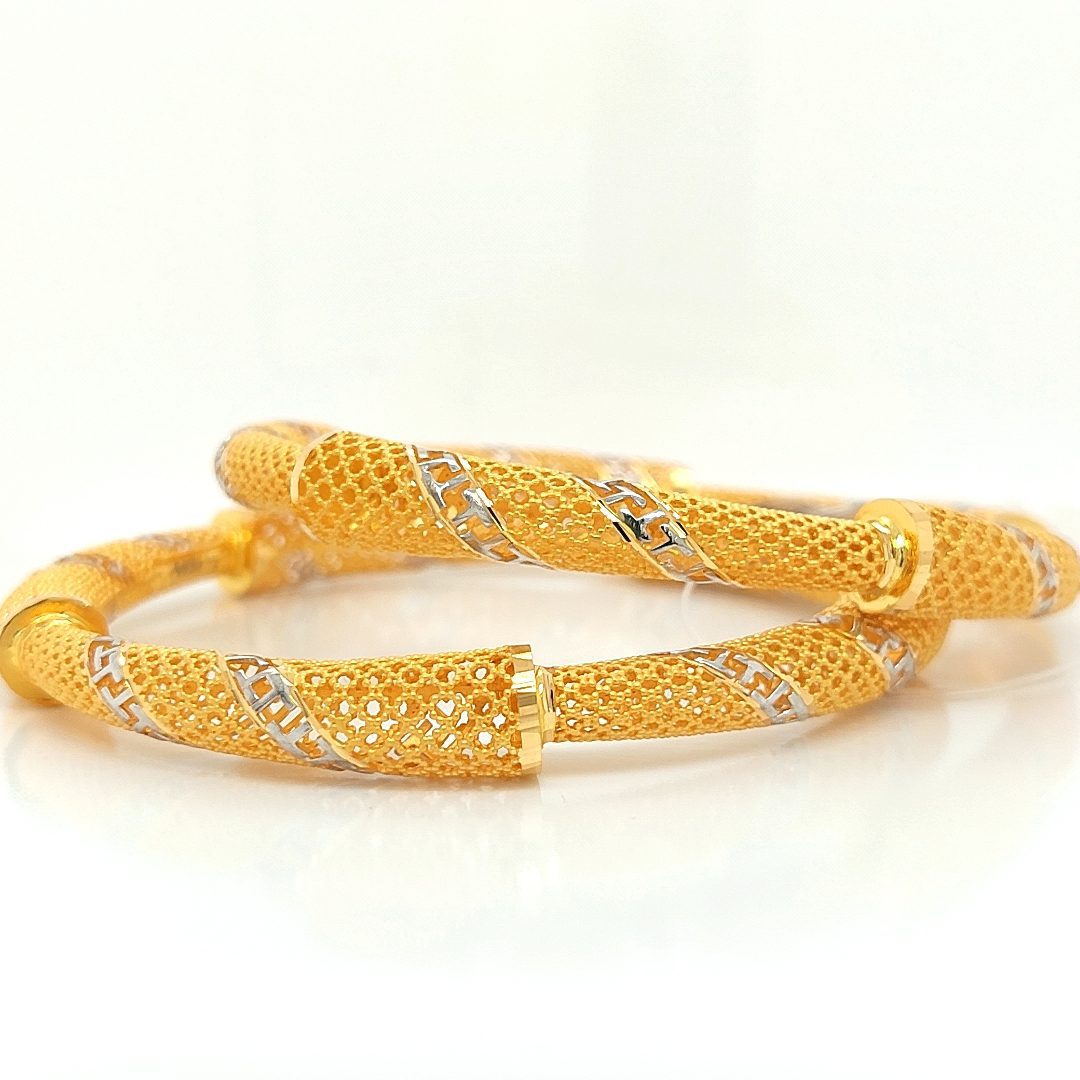 Enhance your style with our elegant gold bangle set of 2 for women. Crafted with intricate details, this timeless duo is perfect for adding a touch of sophistication and charm to any occasion.