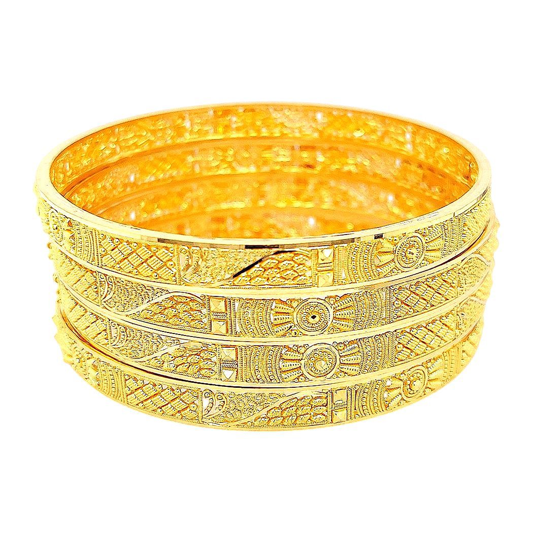 A stunning set of 4-piece gold bangles (Jota) designed with timeless craftsmanship. Perfect for adding elegance and tradition to every occasion.