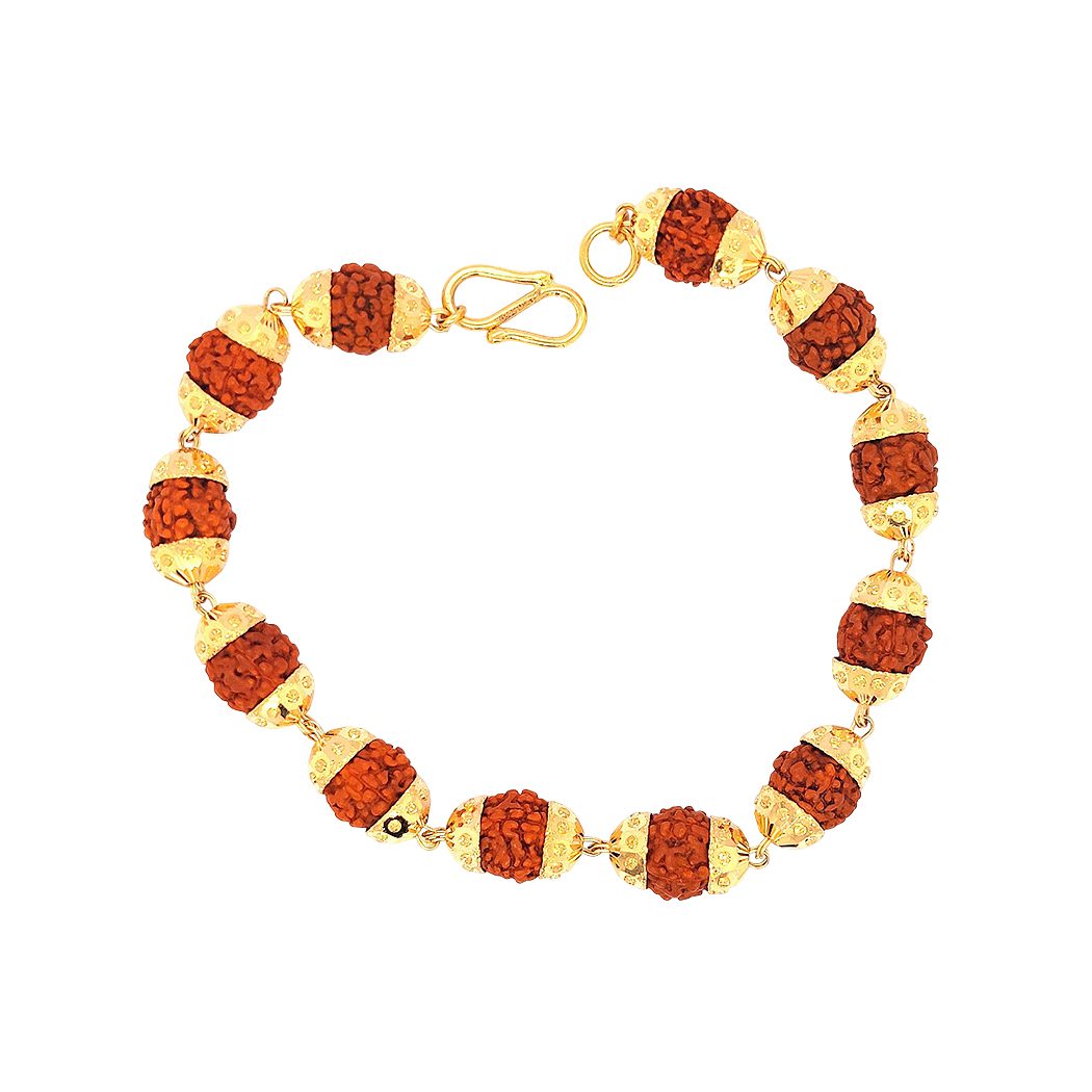 Sacred gold Rudraksh bracelets that blend spirituality with style. Perfect for a touch of elegance and divine protection.
