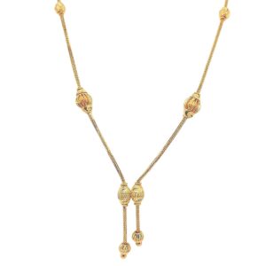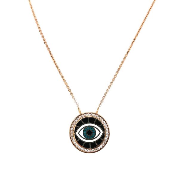 A stylish 18KT gold chain with an attached evil eye pendant, offering elegance with protection. Perfect for a modern yet meaningful accessory.