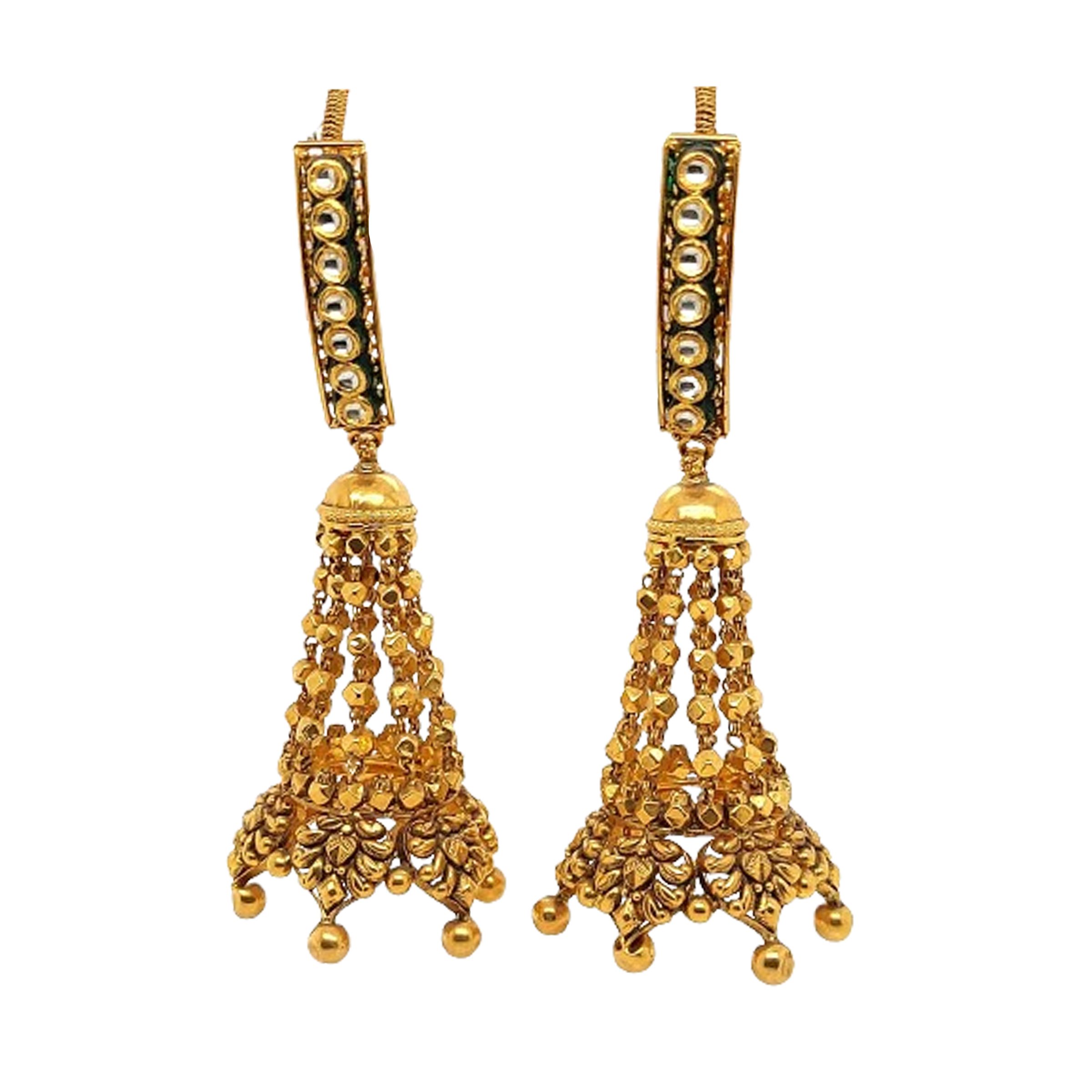 Add some ethereal beauty to your jewellery collection with these exquisite earrings. these earrings will complete any ensemble with their stunning stonework. Perfect for special occasions or just for adding a touch of elegance to your everyday wardrobe.