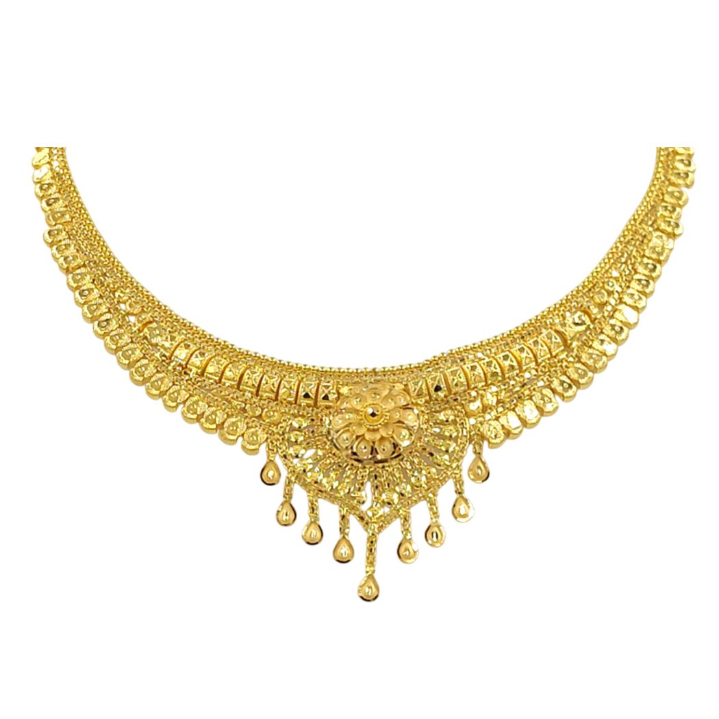 A beautifully crafted gold necklace that exudes elegance and timeless charm. Perfect for adding a touch of sophistication to any special occasion.