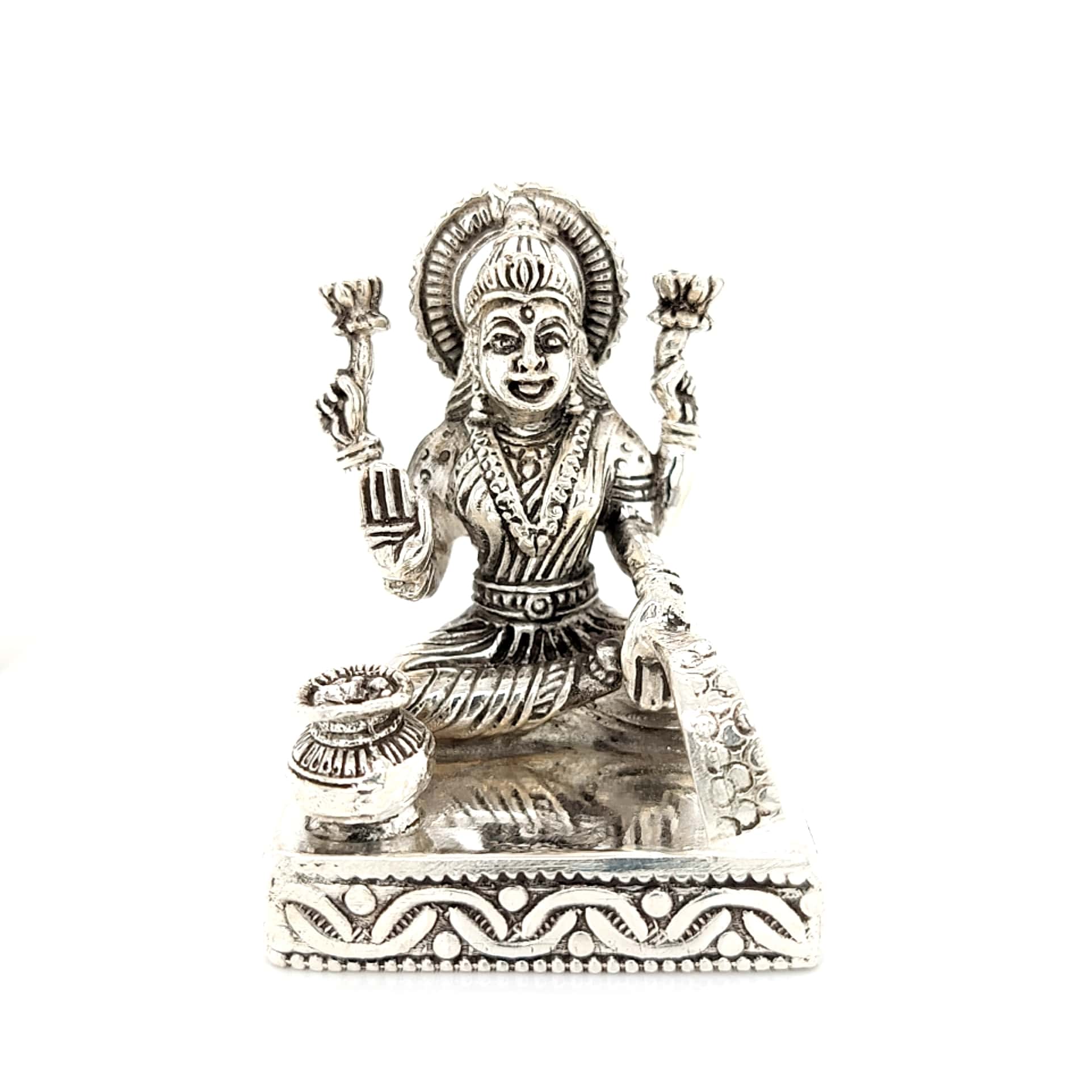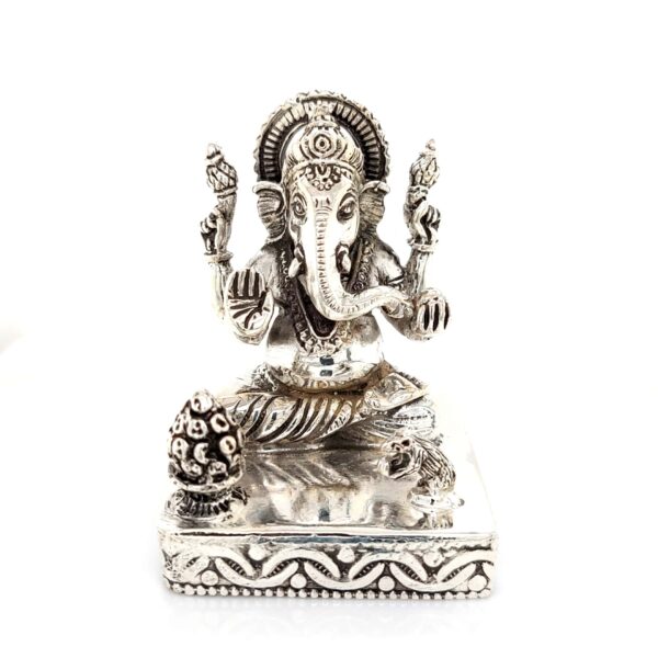 This exquisite Lord Ganesh and Laxmi idol is a testament to the quality, meticulously crafted from 999 pure silver, bearing the mark of its exceptional standard.