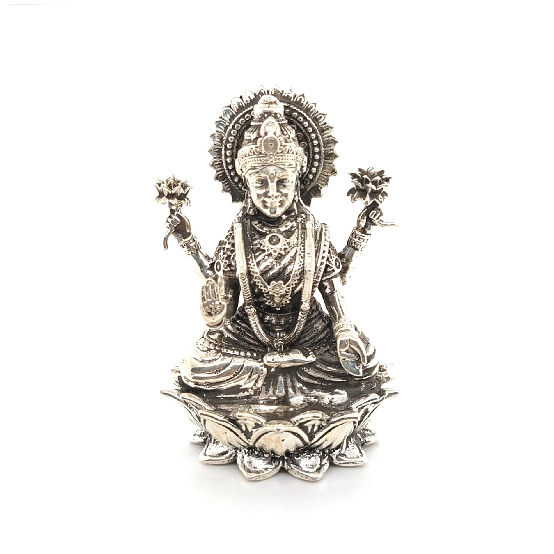 This exquisite Lord Ganesh and Laxmi idol is a testament to the quality, meticulously crafted from 925 pure silver, bearing the mark of its exceptional standard.