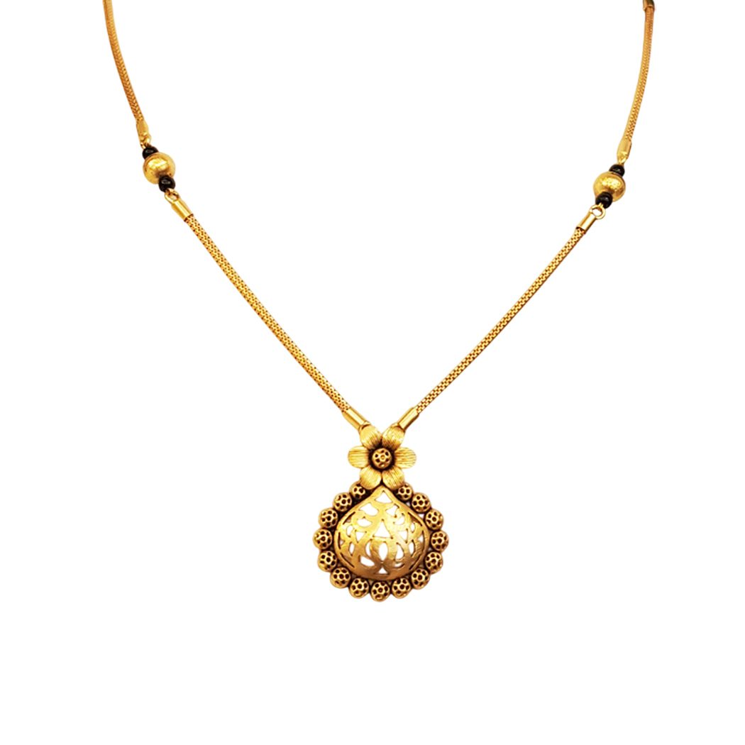 Give a sublime finish to your attire or newly wedding look with this charming mangalsutra crafted in 22 karat yellow gold in an antique finish.