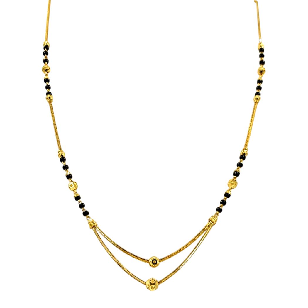 Give a sublime finish to your attire or newly wedding look with this charming mangalsutra crafted in 22 karat yellow gold in an antique finish.