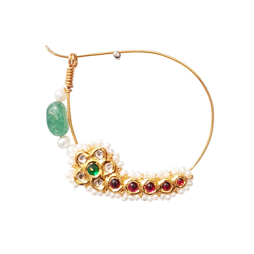 A beautifully crafted gold nath that exudes traditional charm and elegance. Perfect for enhancing your bridal or festive look with a regal touch.