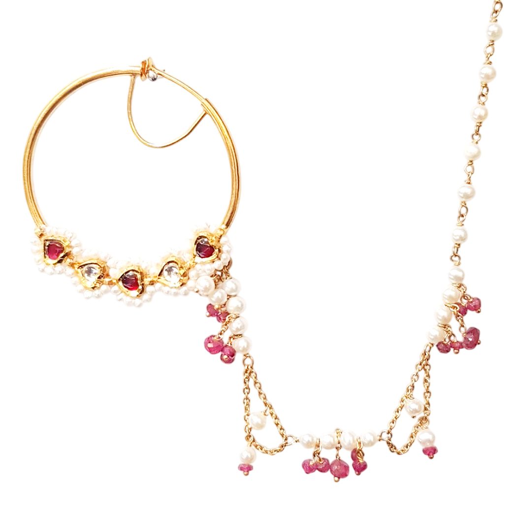 A beautifully crafted gold nath that exudes traditional charm and elegance. Perfect for enhancing your bridal or festive look with a regal touch.