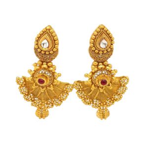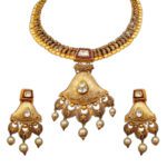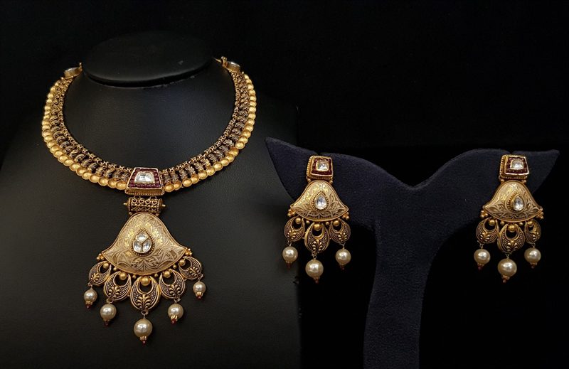 Win hearts and enchant everyone on special occasions by pairing your ensemble with this stylish Necklace Set crafted in 22 Karat Yellow Gold Antique Finish.