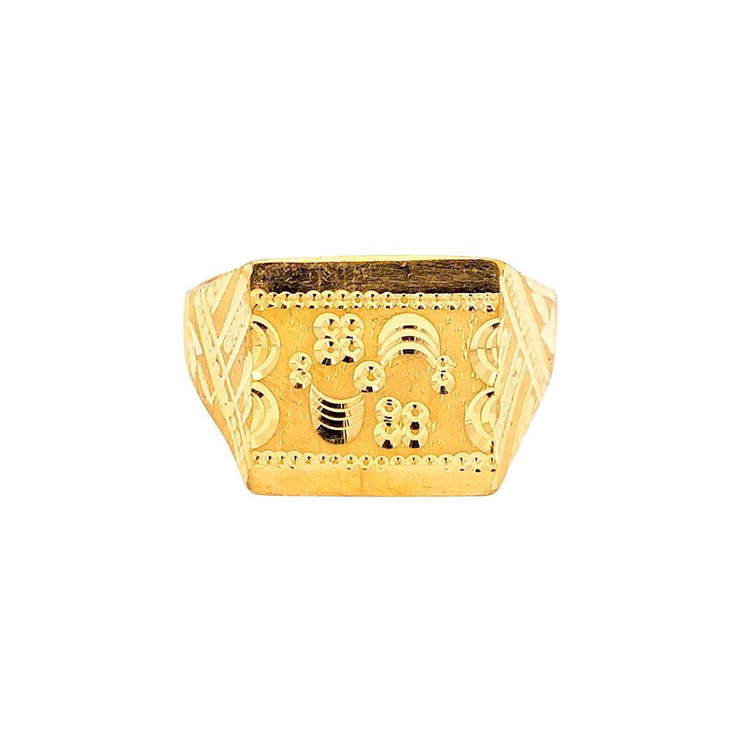 This 22K men gold ring is a gentle reminder that every day is a blessing. The frosting work and high gloss finish highlight the beauty of contrasts and make it the perfect gift for your loved ones.