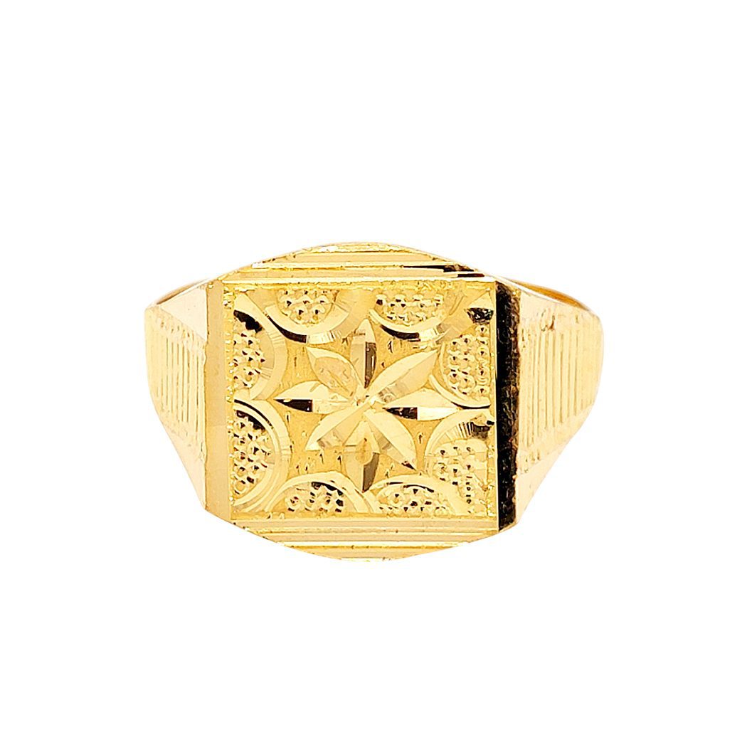 This 22K men gold ring is a gentle reminder that every day is a blessing. The frosting work and high gloss finish highlight the beauty of contrasts and make it the perfect gift for your loved ones.