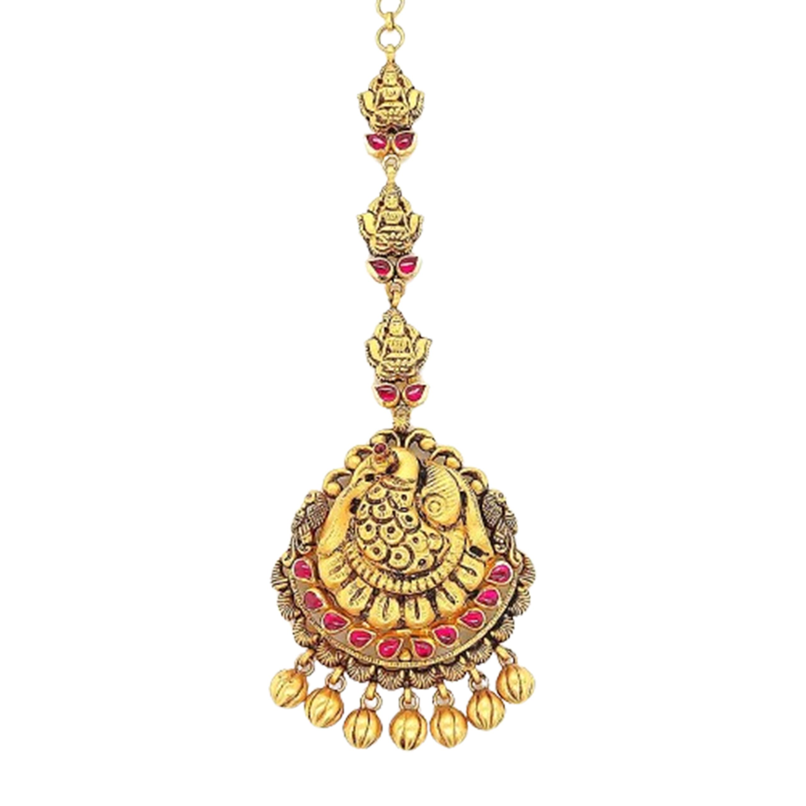 This mangtikai is decorated with quad design hanging at the end with delicate work in it along with jhoomars. Wear it at the wedding party with a saree or lehenga to be the centre of attraction.